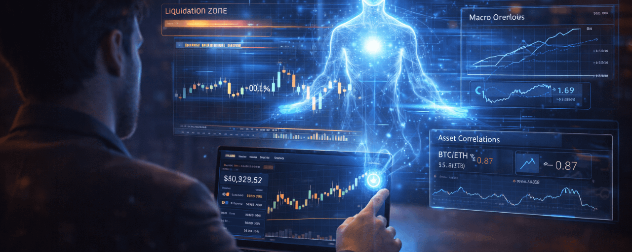 Bình thường khi mình mở chart, mình cũng xem khá nhiều thứ, nhưng thật ra là mình đang bỏ qua khá nhiều mà không để ý. Có những tín hiệu sentiment mình đọc lướt qua rồi thôi. Có những vùng thanh lý mình thấy nhưng không thật sự đào sâu. Nhiều khi correlation giữa các asset mình cũng chỉ nắm được từng phần, chứ không thể giữ hết trong đầu cùng lúc.