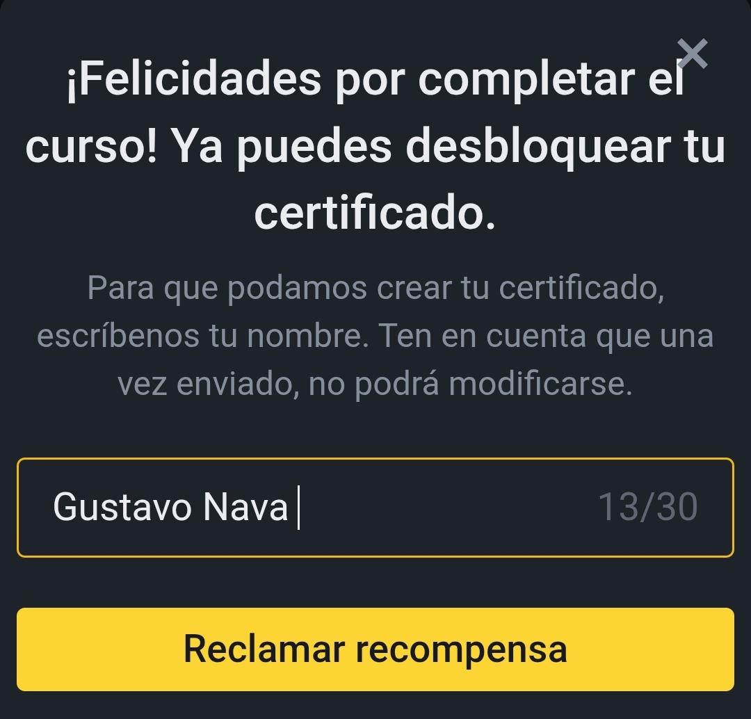 Listo curso aprobado, dirígete a la sección de aprende y gana y participa opten tu certificado👍