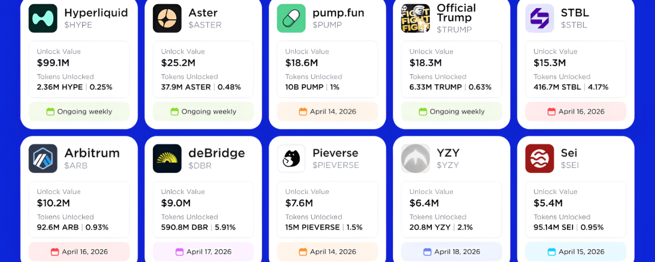Tuần tới (13-19 tháng 4), thị trường sẽ chứng kiến việc mở khóa hơn 280 triệu đô la giá trị token. Liệu điều này có tạo áp lực giảm lên các dự án không?