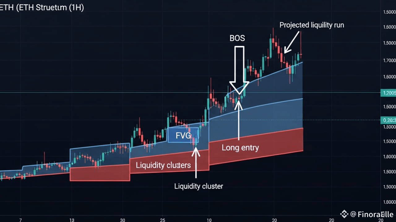 Biểu đồ ETH 1H đang cho thấy sức mạnh thông qua các mức cao hơn và các cú quét thanh khoản được kiểm soát. Nếu điểm giữa FVG giữ vững, hãy mong đợi một cuộc chạy thanh khoản lên phía trên trong các phiên tiếp theo.