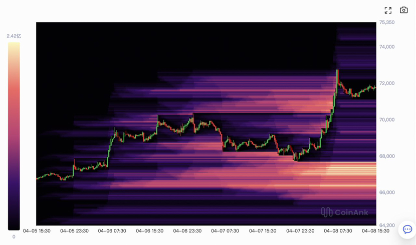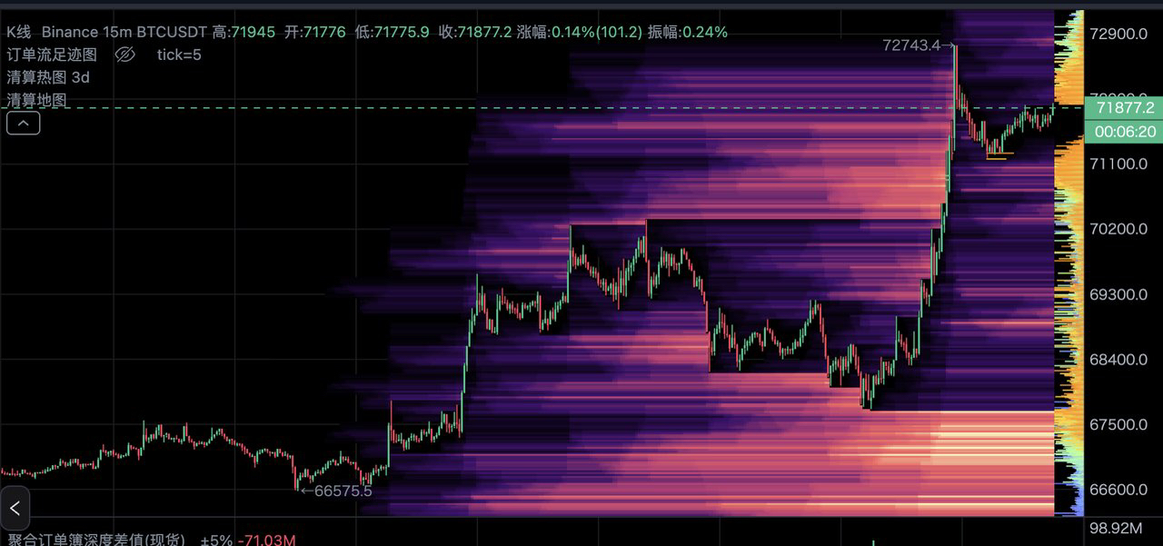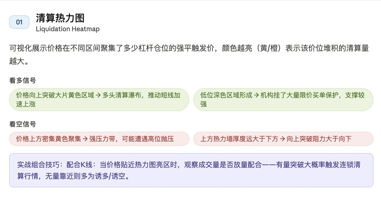 看颜色的"迁移":如果某个价位的颜色在时间轴上持续扩大,说明该位置的清算仓位还没被消化,是值得持续关注的目标区。