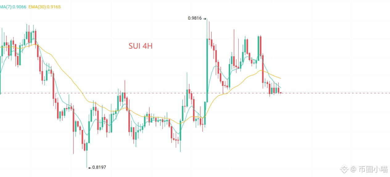 SUI 目前在0.9美元附近震荡。相比它已经涨了多少,更重要的是交易位置是否合适。如果参与,可以重点观察0.8935一线的回踩机会,目标区域大致在0.94附近,下方防守参考0.87。仓位管理依然是关键,先小仓试探,只有行情走对再逐步加仓,同时用短周期均线保护利润。波动越大的币,仓位越要控制。