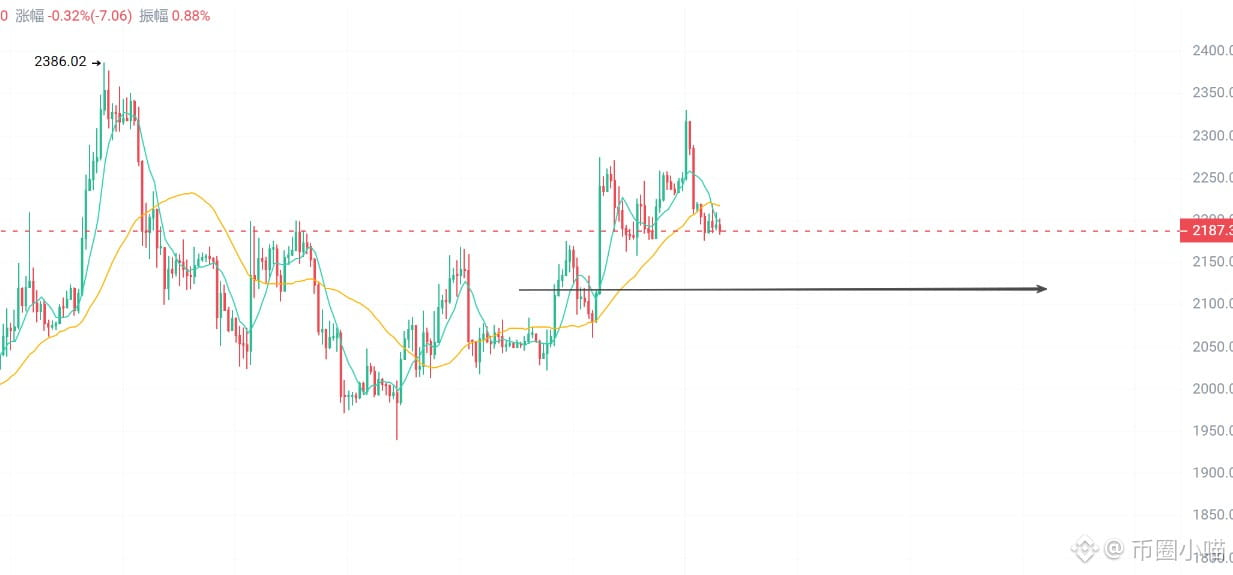 $ETH :以太坊走势相对同步,下方关注2080—2120一线支撑,极端情况下可能插针至2030附近,这些位置同样属于防守区间。若支撑有效,后续仍有机会向2500上方发起冲击。