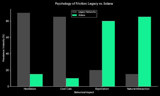 Khi một mạng lưới chậm hoặc đắt, người dùng hành xử cẩn thận. Họ do dự trước khi nhấn nút. Họ tính toán xem giao dịch có giá trị với mức phí hay không. Họ tránh thử nghiệm vì những sai lầm tốn tiền. Họ coi mỗi tương tác như một quyết định tài chính thay vì một hành động kỹ thuật số bình thường. Solana đã thay đổi mô hình đó bằng cách giảm ma sát đến mức mà mọi người cảm thấy thoải mái tương tác một cách tự do hơn. Người dùng bắt đầu thử nghiệm các ứng dụng mới mà không cần suy nghĩ quá nhiều. Họ giao dịch một cách tự nhiên hơn. Họ khám phá nhiều công cụ hơn. Họ di chuyển tài sản mà không coi mỗi hành động như một cam kết lớn.