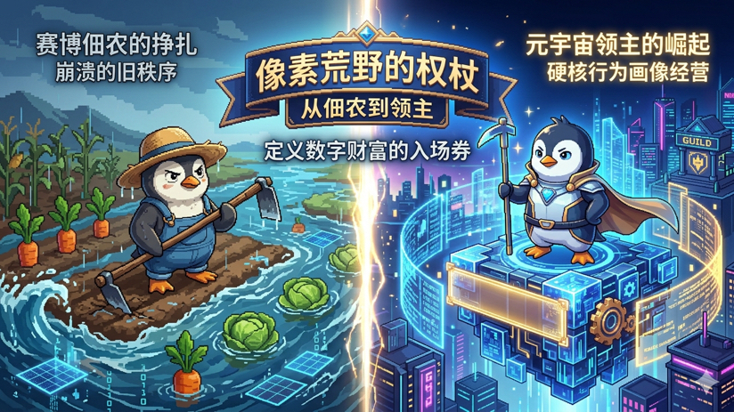 现在的Pixels,已经从一个像素小游戏进化成了一个极其硬核的行为经济模型。核心竞争力已经变了:不比谁的手速快,也不比谁的号多,而是比谁在生态里的“根”扎得更深。小企鹅提出的新生存法则叫作:硬核行为画像经营。什么叫行为画像?简单来说,系统正在通过你与NPC的交互频率、任务完成的路径选择,以及在公会决策中的活跃度,为你绘制一张无形的信用支票。如果你只是一个只会种地卖菜的机器,你的画像就是单薄且可替代的。但如果你能精准卡位高权重任务,深度参与那些具有决策意义的生态建设,你的每一个像素动作都会被转化为有逻辑的资产记录。这种资产记录才是你真正的入场券,它是你对抗规则迭代和市场波动的唯一掩体。在元宇宙的逻辑里,信用就是最坚硬的通货。只要你在像素荒原里建立起属于自己的信用壁垒,你就完成了从普通农民到元宇宙领主的本质进化。未来的Pixels,是一场关于“组织力”和“认知差”的竞赛。每一个公会的崛起,实际上都是在进行一场数字领地的划分。小企鹅发现,那些真正能分到肉的聪明人,早已不再纠结于那一两颗作物的产出。他们在研究公会的博弈规则,在推演任务板背后的数值走向,甚至在通过社交影响力去定义局部的经济秩序。