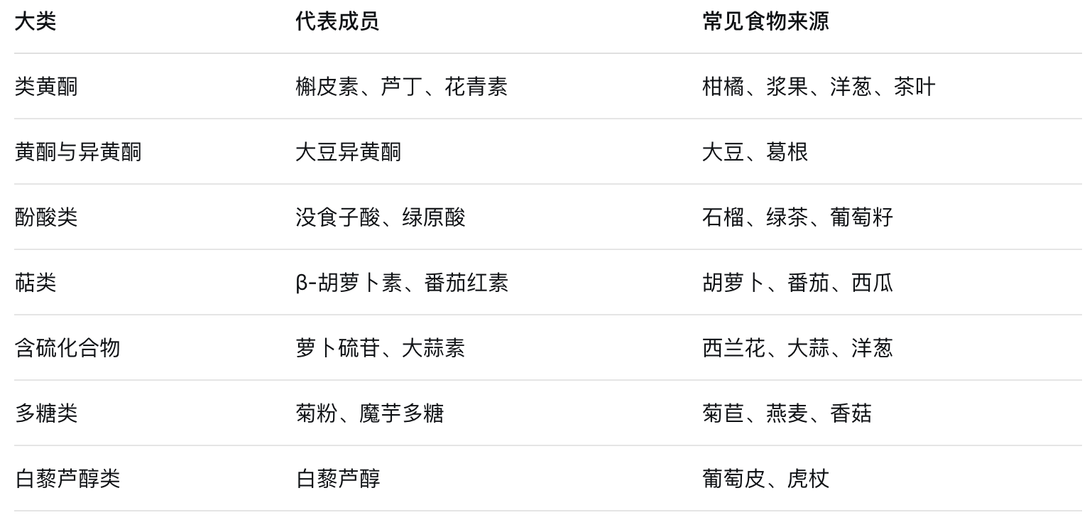 Trên toàn cầu, đã biết có hơn 200 loại hợp chất dinh dưỡng thực vật, có thể chia thành các loại lớn sau: