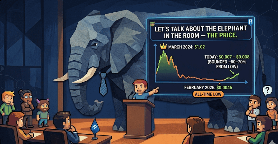 If you bought near the top, that stings. But if you're looking at this fresh today? The all-time low was just hit in February 2026 at $0.0045 and we've bounced roughly 60–70% from there. The bottom may already be in.