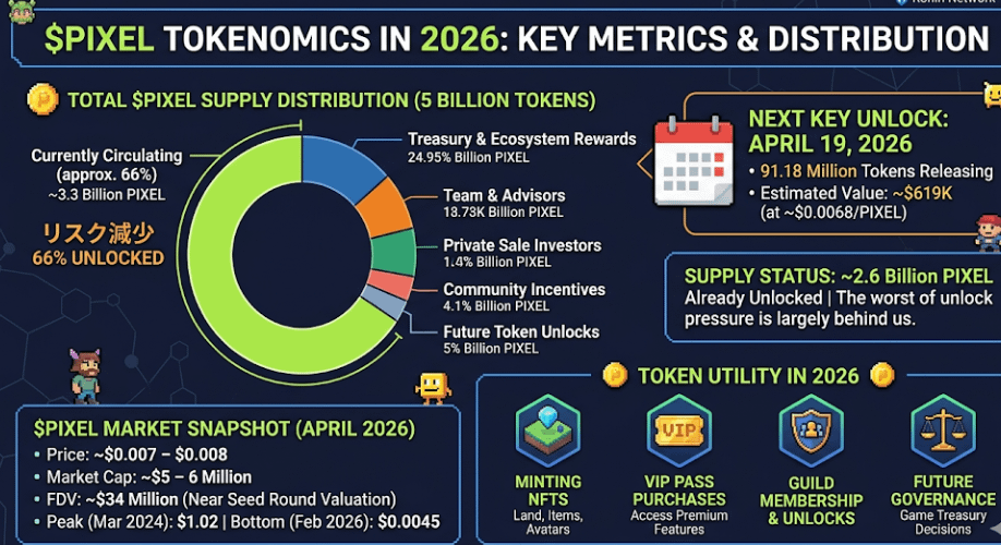 - Currently circulating: ~2.6 billion PIXEL are already unlocked .