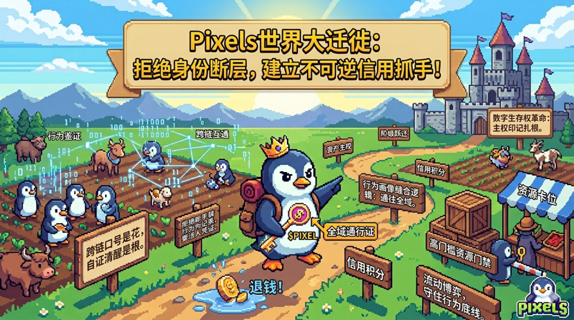 这其实是一场关于数字生存权的终极革命。未来的像素荒原,不再看你攒了多少搬砖钱,而是看你的主权印记扎得有多深。那些试图靠垄断数据来收过路费的旧势力,在这种无边界的流动面前迟早得完结,只要你手里握着那份能穿透所有链条的自证逻辑,哪怕规则一夜之间全变了,你依然是那个能定义自己价值的元宇宙领主。最后小企鹅还是要泼盆冷水:别被那些花里胡哨的跨链口号冲昏了头。路打通了,并不代表你走过去就能捡钱。如果你丢了那份自证的清醒,只会在更广阔的荒野里迷失得更快。在这个博弈升级的时代,守住你的行为底线,才是最硬的活法。@Pixels $PIXEL #pixel