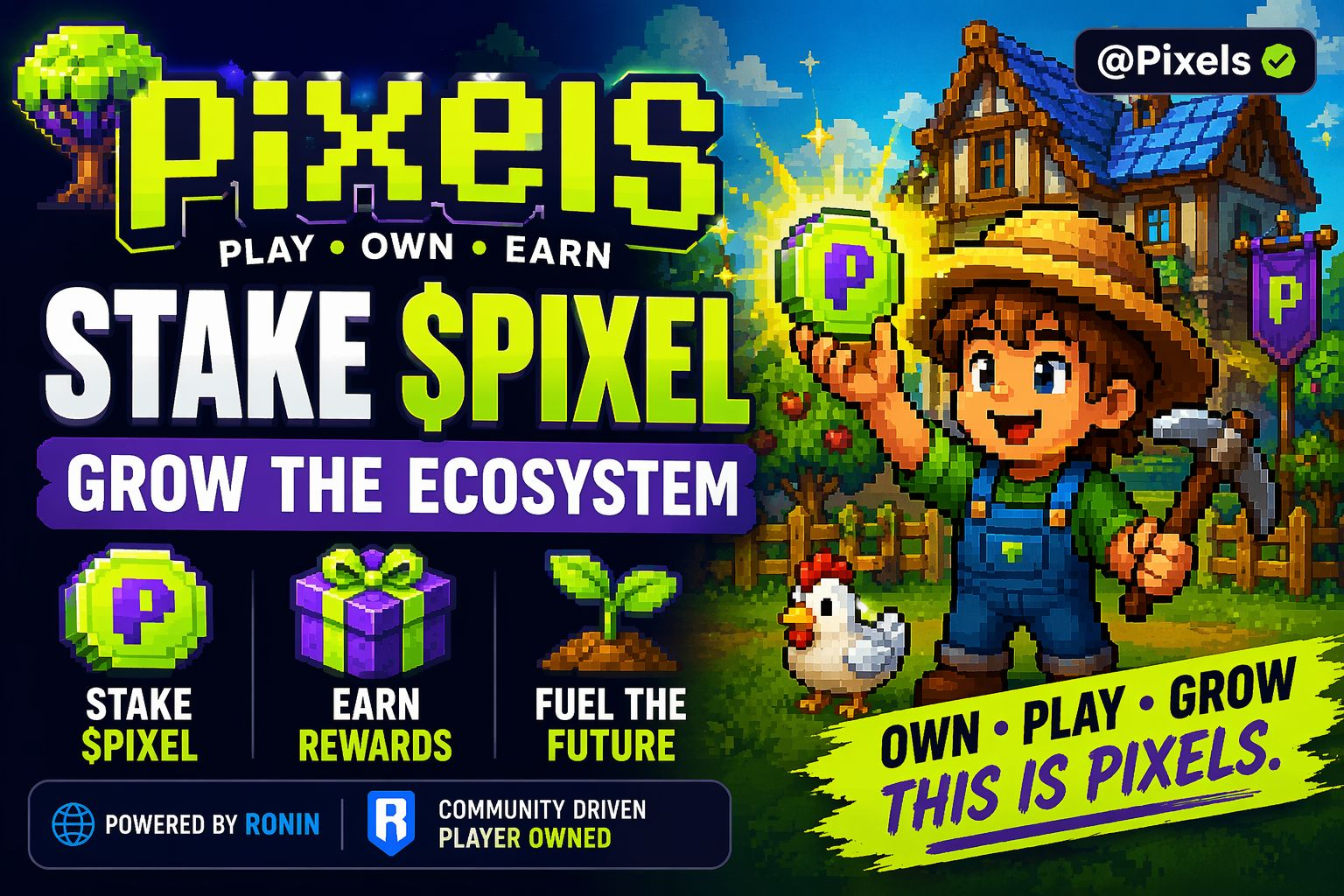 The ecosystem is powered by $PIXEL, the native token that fuels transactions, rewards, and governance across the platform.