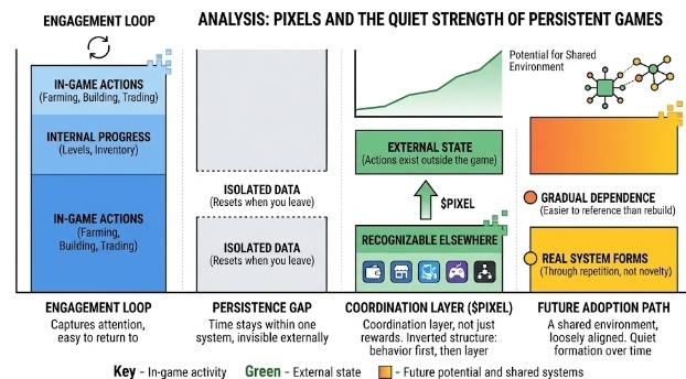 For something like $PIXEL to matter beyond a single game, other systems need to recognize it. That means coordination, shared standards, and a willingness to rely on something external. Most platforms aren’t designed that way. They prefer to stay closed, to control their own data and logic.
