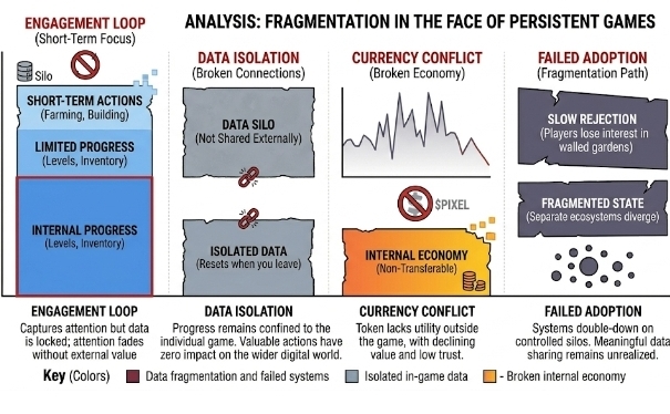 A simple action—farming, building, trading can carry weight beyond the immediate loop. Not because the game tells you it matters, but because the state exists outside the game’s boundaries. It can be verified, referenced, or extended.