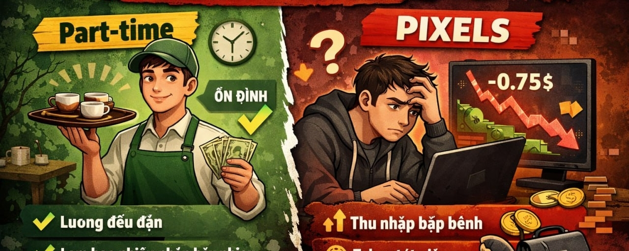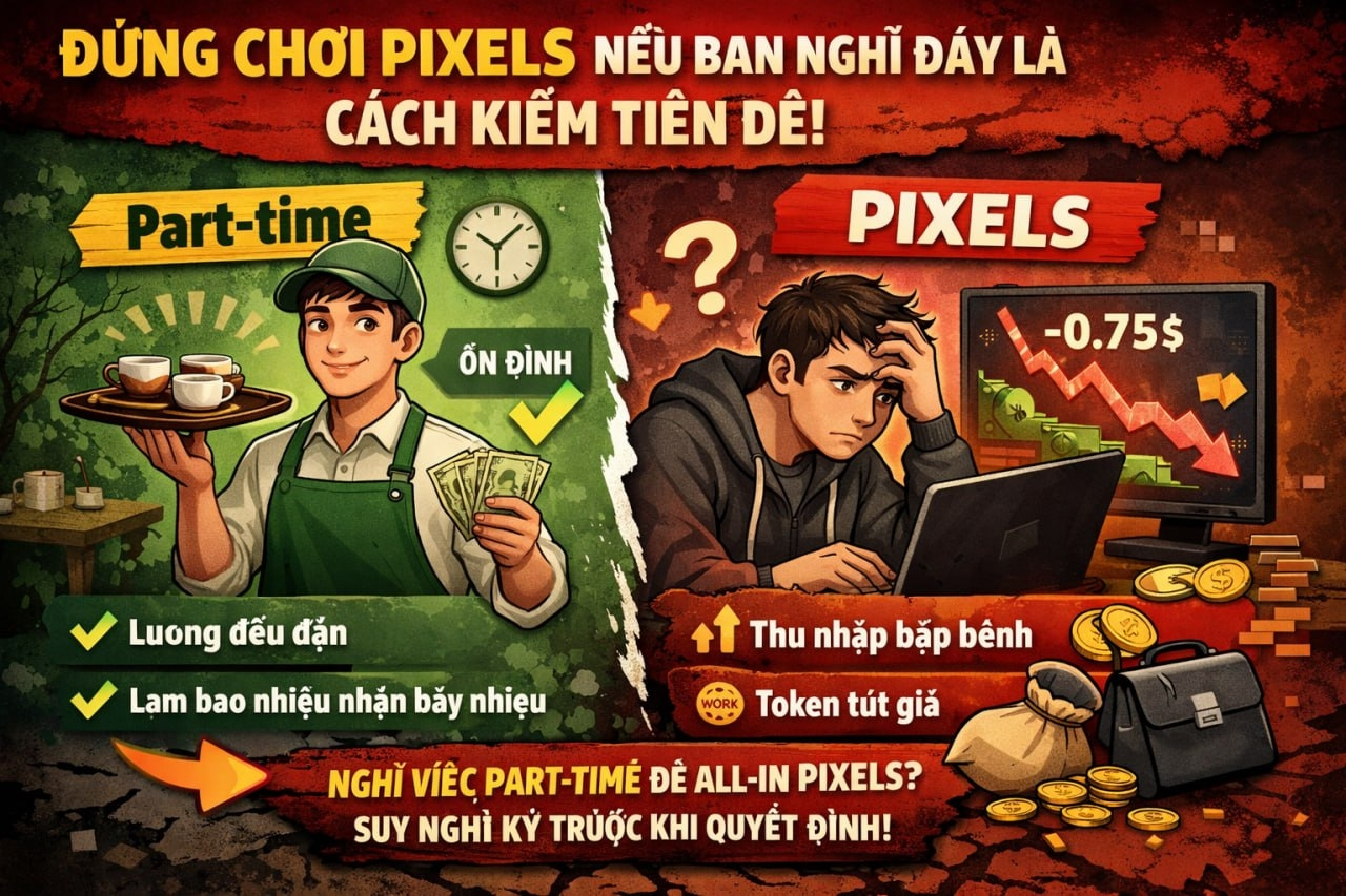 Nếu bắt buộc chọn một thì mình vẫn nghiêng về part-time hơn, vì ít nhất nó ổn định. Còn Pixels thì mình vẫn chơi, nhưng xác định luôn: hên xui. Kiếm được thì vui, không thì coi như đang test game, đỡ bị kỳ vọng quá rồi lại thất vọng.