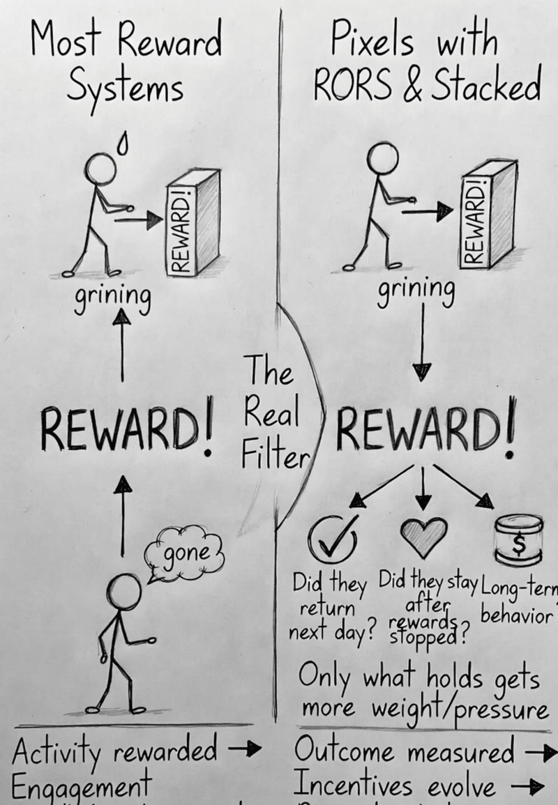 Pixels is powered by a smart engine called Stacked. And unlike typical systems that just distribute tokens randomly, this one actually studies how players behave. It tracks engagement, understands patterns, and adjusts rewards in a way that makes sense.