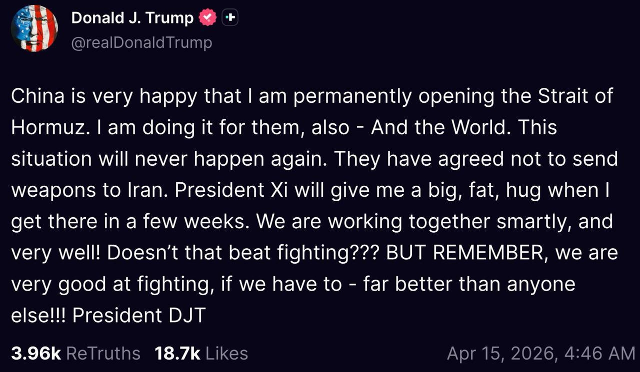 Tổng thống Trump cho biết ông đang nỗ lực mở eo biển Hormuz, cho rằng điều này có lợi cho Trung Quốc và cả nền kinh tế toàn cầu.