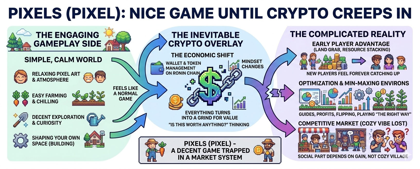 But yeah, that same ownership is also the problem. Because once things have value, people treat them differently. It stops being just a game world. It becomes a market. And markets aren’t relaxing. They’re competitive. They’re messy. They reward people who know how to play the system, not just the game.