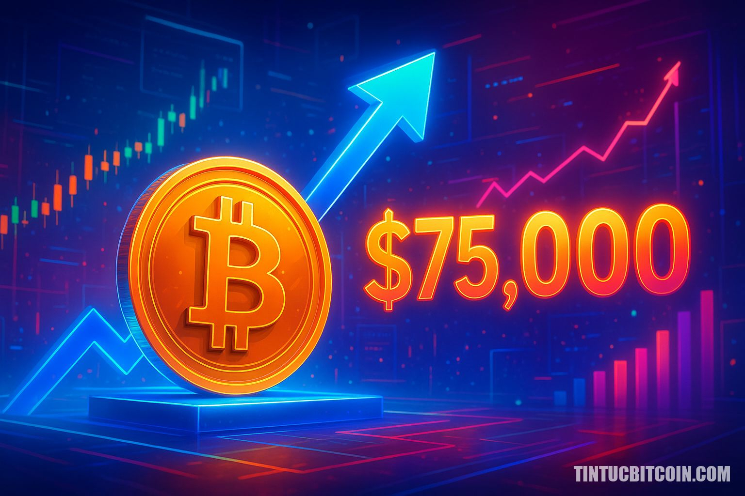 BTC chạm mức cao 24 giờ 75.206,21 USD và giao dịch gần 74.755 USD sau nhịp bứt phá.