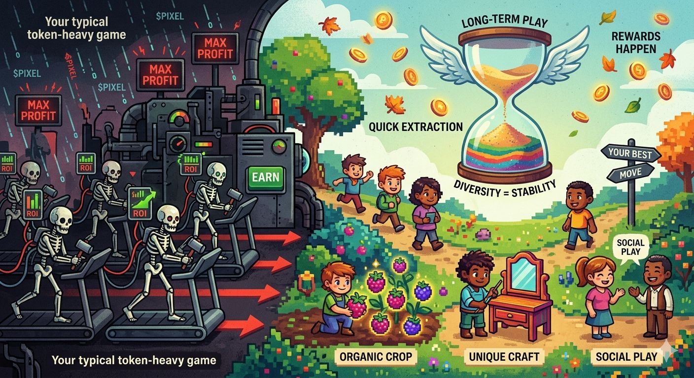 The real tragedy of most Web3 games isn't that they’re boring—it’s that they’re basically designed to self-destruct. They launch with a massive bang, attract a crowd with the promise of easy money, and then inevitably collapse once the reward pool dries up. Most developers treat their game economy like a marketing campaign, but Pixels is treating its economy like an actual ecosystem.