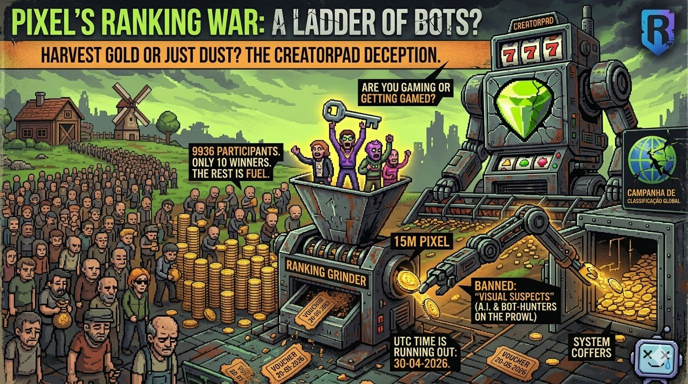 Estou vendo milhares de pessoas se matando na corrida pelos prêmios da campanha global de 15.000.000 de $PIXEL da Binance, fingindo um amor incondicional por um joguinho de "agricultura, exploração e criação". Mas vamos ser 100% sinceros só por um minuto? A esmagadora maioria aqui não dá a mínima para a inovação da Ronin Network ou para plantar cenourinhas virtuais no metaverso. A galera está aqui pelo dinheiro fácil, caçando airdrop e esperando um milagre no gráfico.