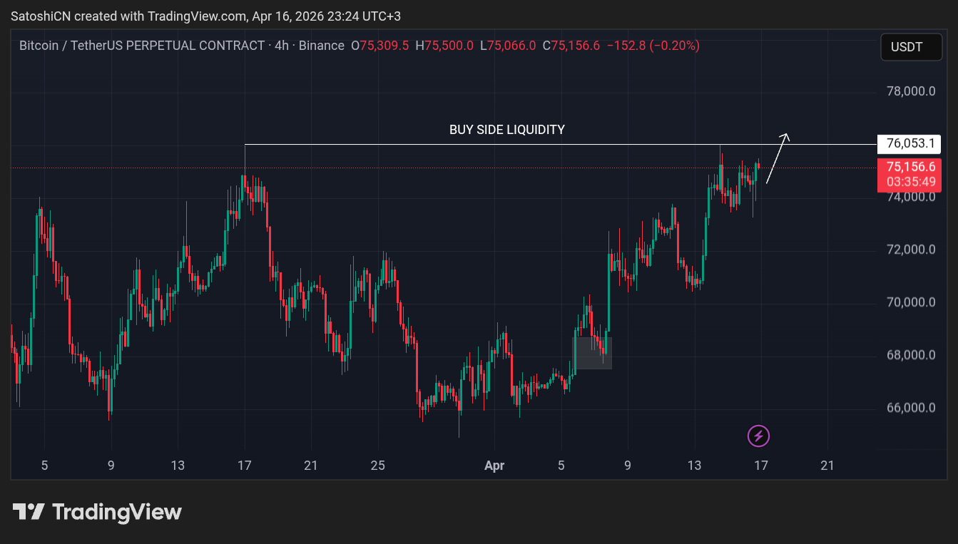 I’m still not fully convinced that $BTC has taken out the buy-side liquidity resting above the 76k zone.