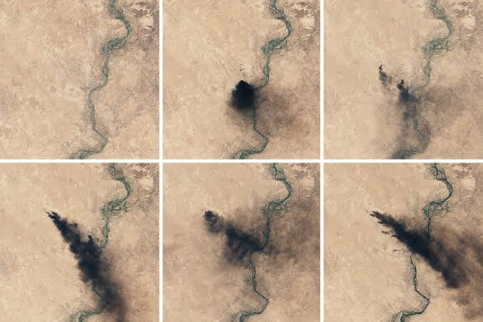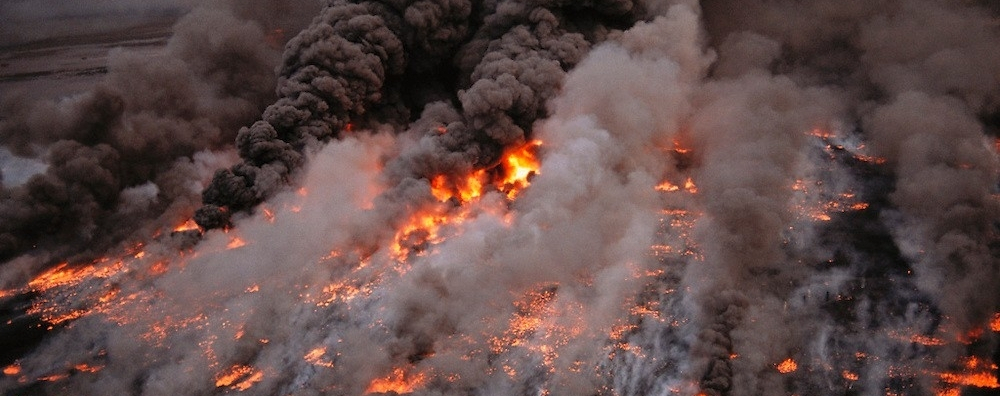 Trong Chiến tranh Vùng Vịnh, các lực lượng Iraq rút lui đã đốt cháy các mảnh dầu của Kuwait, tạo ra một trong những thảm họa môi trường tồi tệ nhất từng được ghi nhận. Hơn 500 giếng dầu đã cháy ngoài tầm kiểm soát, thải ra ước tính 800 triệu lít dầu mỗi ngày.
