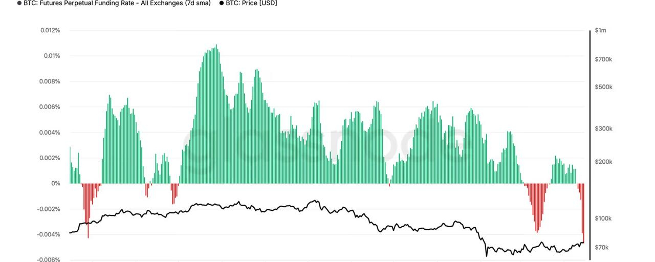 Mình nhìn chart funding rate hiện tại thì thấy một điểm khá rõ: funding đang rơi về mức âm sâu nhất kể từ 2023. Nghĩa là đa phần thị trường đang nghiêng về short, trả phí cho phe long — một trạng thái thường chỉ xuất hiện khi sentiment trở nên cực kỳ bi quan.