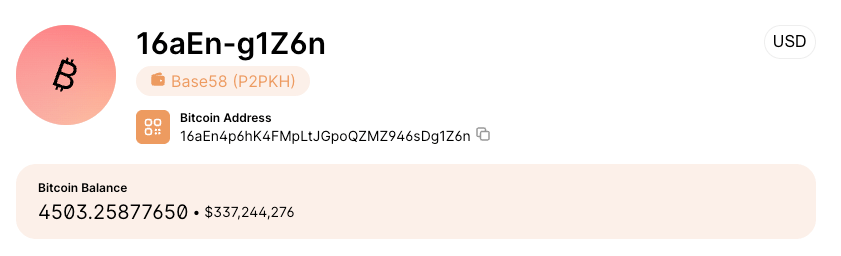 Địa chỉ được Giám đốc điều hành trích dẫn hiện đang nắm giữ 4.503 Bitcoin (BTC) trị giá khoảng 334 triệu USD, với giao dịch cuối cùng được ghi nhận vào tháng 11 năm 2025 tính đến thời điểm xuất bản.