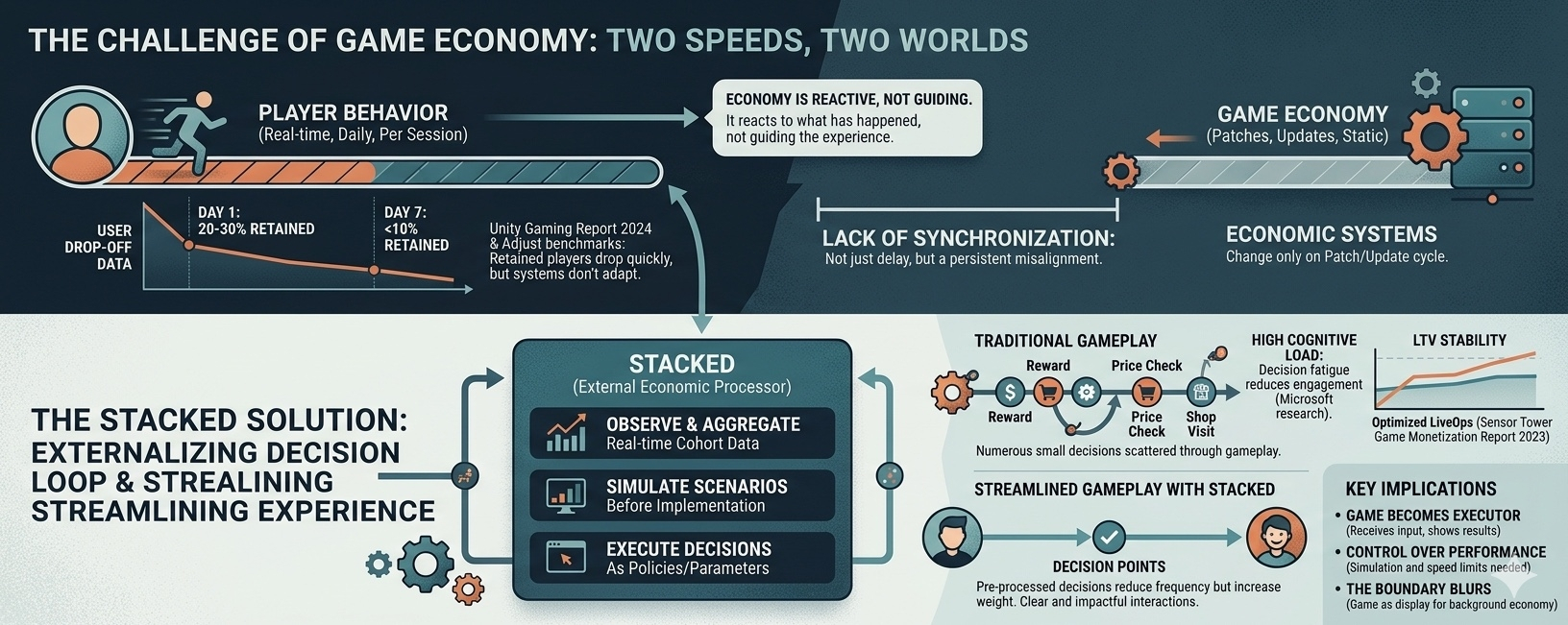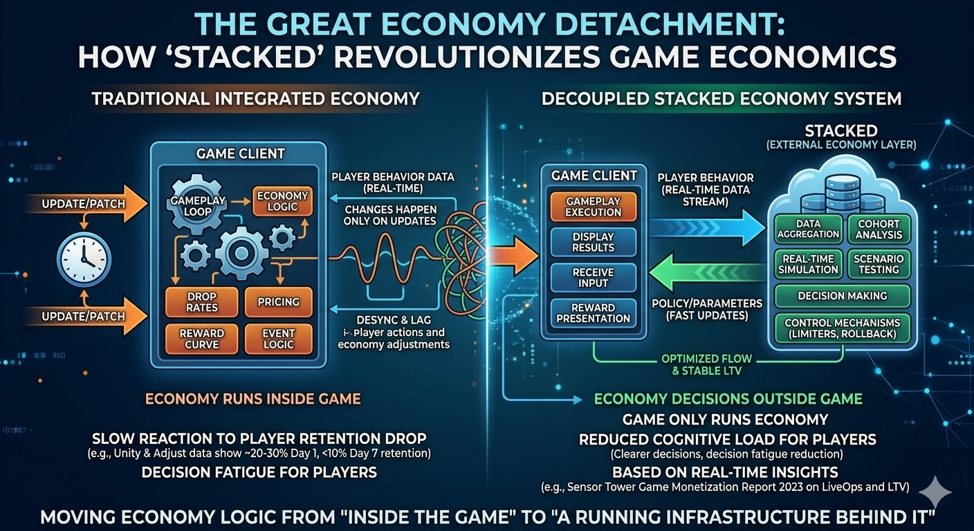 Stacked chính là lớp điều phối đó, nhưng nằm ngoài game. tuy nhiên, khi economy rời khỏi game, vấn đề không còn chỉ là tối ưu nữa. nó trở thành vấn đề kiểm soát.