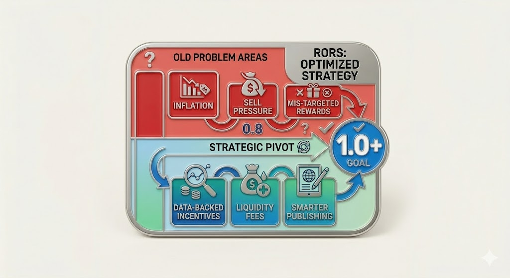 At its core, RORS is a very simple metric, and that is exactly why it matters. Pixels describes it as something similar to ROAS, Return on Ad Spend. In easy words, it compares how much is being distributed in rewards to how much revenue the protocol receives back in fees. Right now, Pixels says its RORS is around 0.8, and the goal is to push it above 1.0. That target is important because once RORS goes above 1.0, every reward token spent starts generating net-positive revenue for the ecosystem. For me, that changes the conversation completely. Instead of rewards being treated like a cost that keeps leaking out, they start becoming part of a model that can support itself. That is why I think RORS is not just another metric on paper. It could become the real test of whether Pixels is building something sustainable or not.