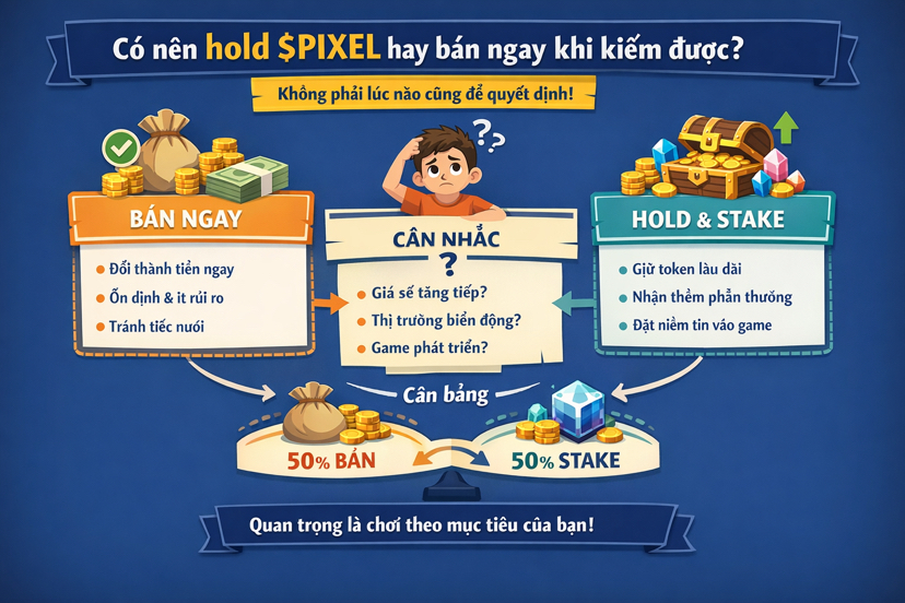 Theo cách mình hiểu bây giờ, $PIXEL không chỉ là thứ để bán ngay, mà còn là một phần trong trải nghiệm dài hơn với game. Việc hold hay bán không còn là quyết định “đúng hay sai”, mà là cách bạn quản lý nó sao cho phù hợp với mục tiêu của mình.