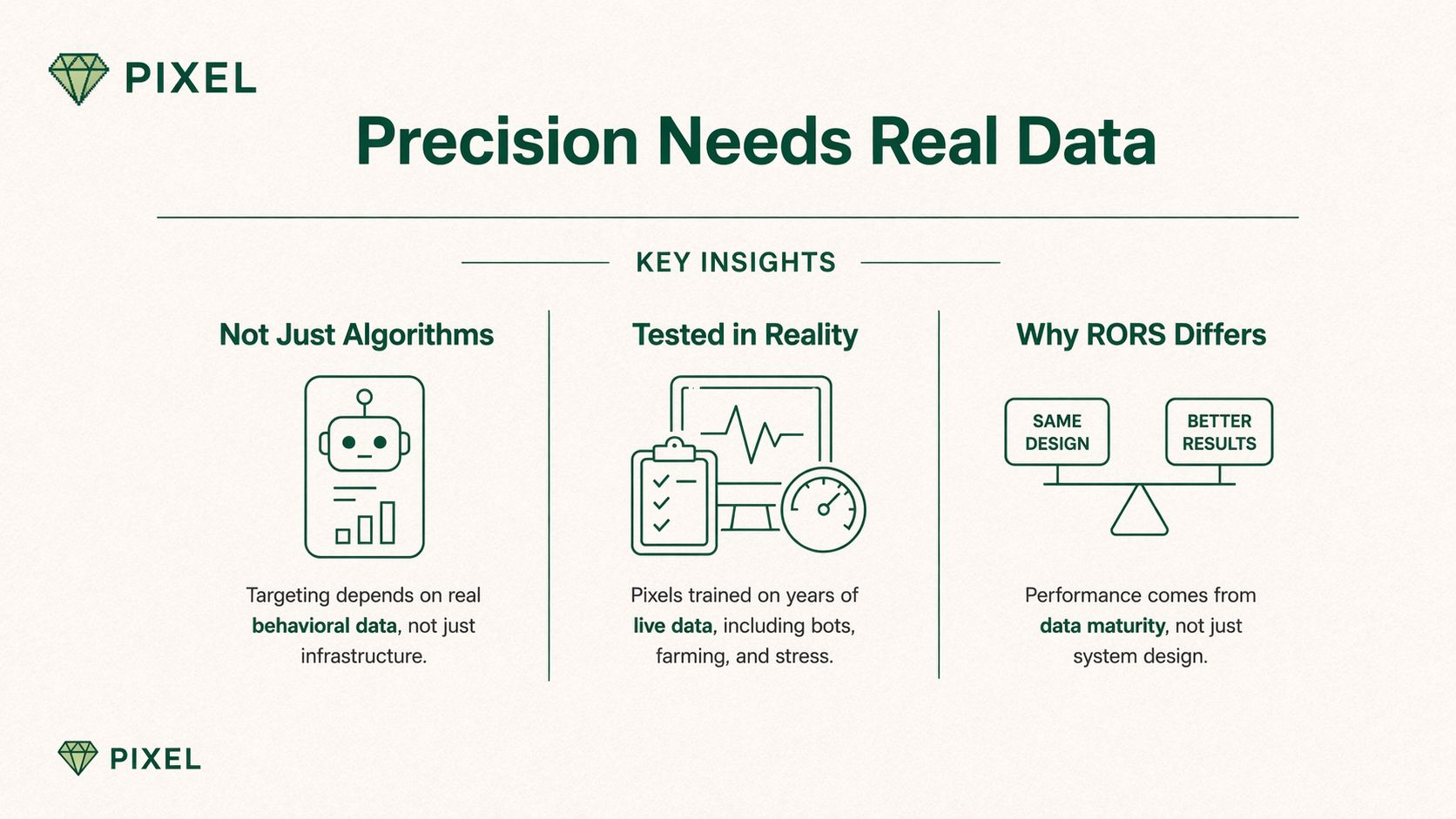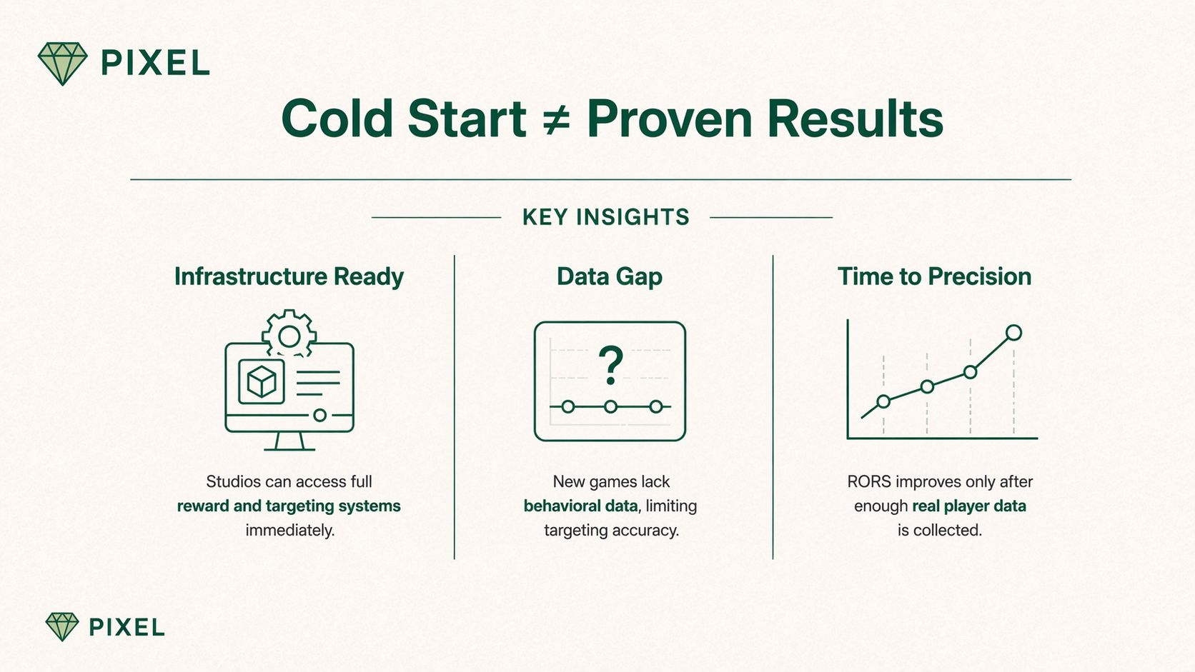Mình hay nghĩ tới cái gọi là cold start gap. Tức là hệ thống vẫn hoạt động, nhưng độ chính xác chưa cao vì chưa có đủ tín hiệu hành vi. Và khi precision chưa cao thì RORS khó mà lên được mức như 3:1, ít nhất là trong giai đoạn đầu.