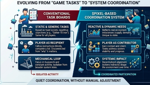 $PIXEL, in that sense, isn’t just a reward mechanism. It acts more like a coordination signal. When tasks are tied to it, they’re not only guiding player behavior—they’re aligning it with a broader state. Supply, demand, progression, all subtly influencing what shows up as “work.”