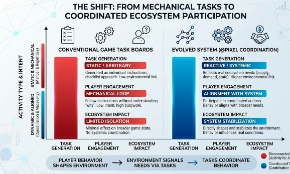 If over time, tasks stop feeling repetitive and start feeling necessary—if players naturally follow them because they reflect real conditions, not just arbitrary goals—then the system is doing something right.