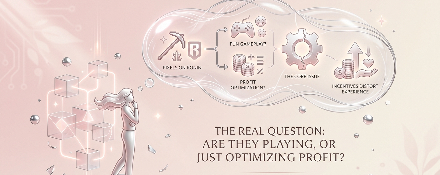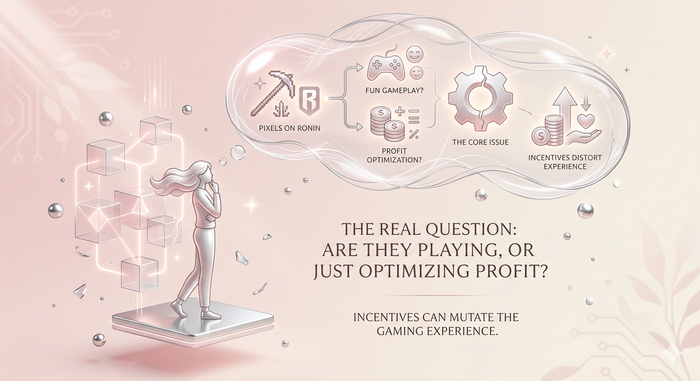 Ý nghĩ này xuất hiện khi mình đang tìm hiểu và quan sát cách Pixels phát triển sau khi chuyển sang Ronin. Lúc đầu mình nghĩ… đây chỉ là một game farming đơn giản, tận dụng trend Play-to-Earn. Nhưng khi tìm hiểu kỹ hơn một chút, mình nhận ra… vấn đề không nằm ở gameplay, mà nằm ở cách người chơi tương tác với hệ thống kinh tế. Thực sự mà nói, vấn đề lớn nhất không phải là game có hay hay không, mà là người chơi đang “chơi” hay đang “tối ưu lợi nhuận”. Hầu hết các dự án đều mắc cùng một sai lầm ngay từ đầu… họ nghĩ rằng thêm incentive sẽ giữ chân người dùng, nhưng thực tế lại khiến trải nghiệm bị biến dạng.