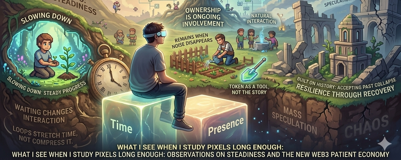 So I keep coming back to it, not because it’s exciting in the usual sense, but because it feels steady. And in a space that’s constantly chasing the next spike of attention, steadiness starts to stand out. I’m still watching, still trying to understand what it becomes when more time passes, when more people come and go. Because in the end, that’s what matters—whether something can keep existing when the initial excitement is gone. Pixels hasn’t proven that yet, but it feels like it might actually be trying to.