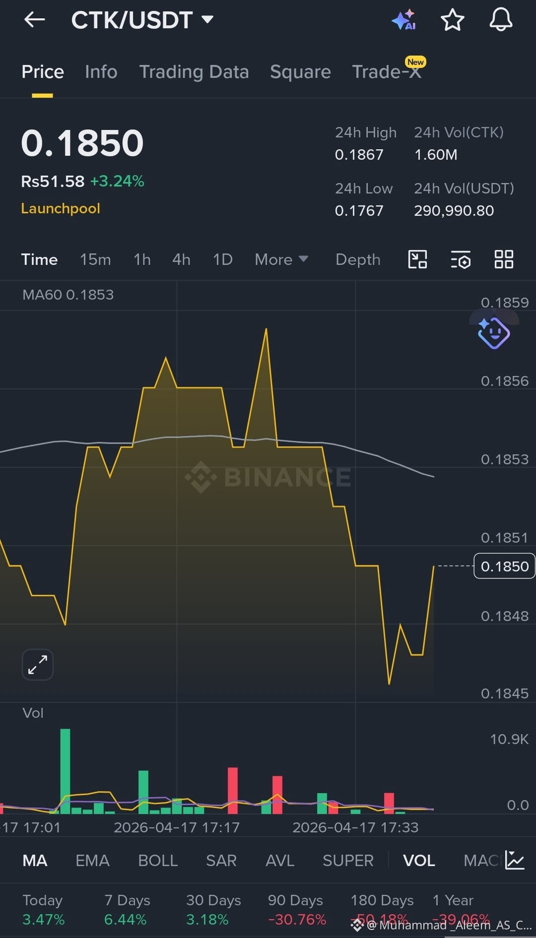3️⃣ Technical Structure: CTK is showing a "Bullish Pennant" on the 4H chart. Holding above the $0.170 support is crucial; a decisive break above $0.185 on high volume could trigger a parabolic move.