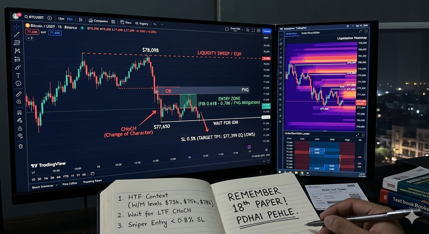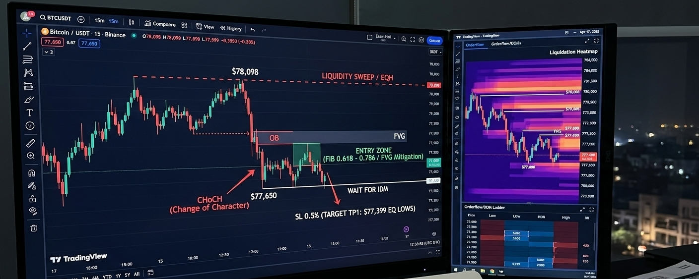 Every pump to $78,098 isn’t breakout - it’s a stop hunt above equal highs. Every dump to $77,399 isn’t crash - it’s IDM mitigation before the real move.