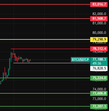 Nếu hôm nay phá vỡ vị trí 76830, thì bắt đầu điều chỉnh ở mức 1-2 giờ, tiếp tục xuống vị trí 75230-73600-72200 gần đó để đợi lệnh mua!#BTC走势分析