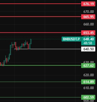 BNB hôm nay lưu ý vị trí 640, chỉ cần không phá vỡ vị trí này, phe mua vẫn mạnh mẽ, tiếp tục hướng lên phía trên đến các vị trí 653-666-676 gần đó để đợi lệnh bán!