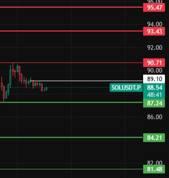Nếu hôm nay không đứng trên vị trí 89, thì mức 1-2 giờ tiếp tục điều chỉnh, tiếp tục xuống vị trí 87-84-81 gần đó để đợi lệnh mua!#solana