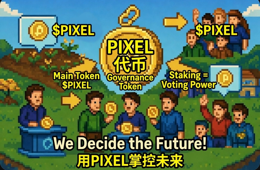 一句话总结:PIXEL 不只是高级货币,更是我们的“像素选票”。我们质押它、消耗它、治理它,把童年农场变成真正属于玩家的 Web3 帝国 #pixels @Pixels