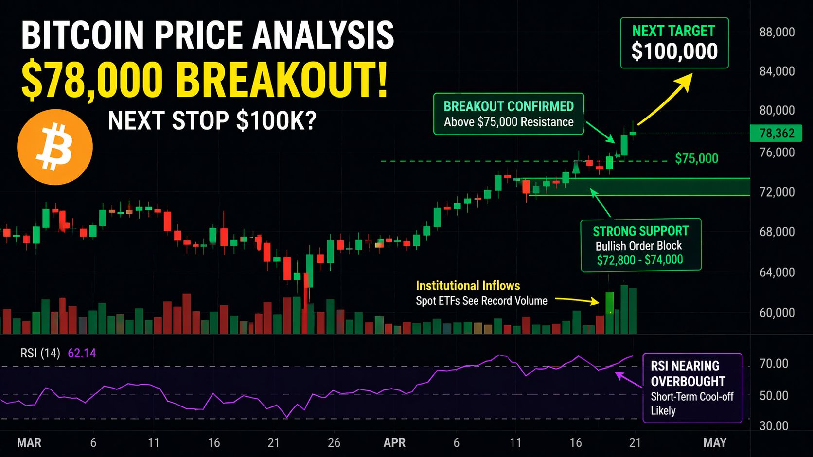 Thị trường tiền điện tử hiện đang chứng kiến một sự chuyển mình lớn về động lực. Tính đến giữa tháng 4 năm 2026, Bitcoin đã thành công trong việc lấy lại khoảng từ $77,000 đến $78,000, và toàn bộ cộng đồng đang đặt ra một câu hỏi: Chúng ta có đang tiến thẳng đến $100,000, hay có một "Bẫy Thanh Khoản" đang chờ đợi chúng ta?