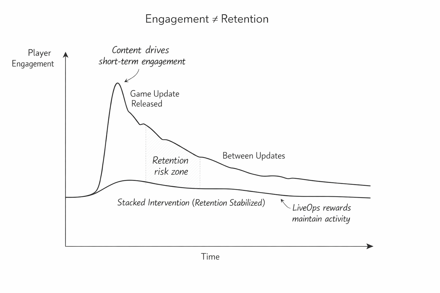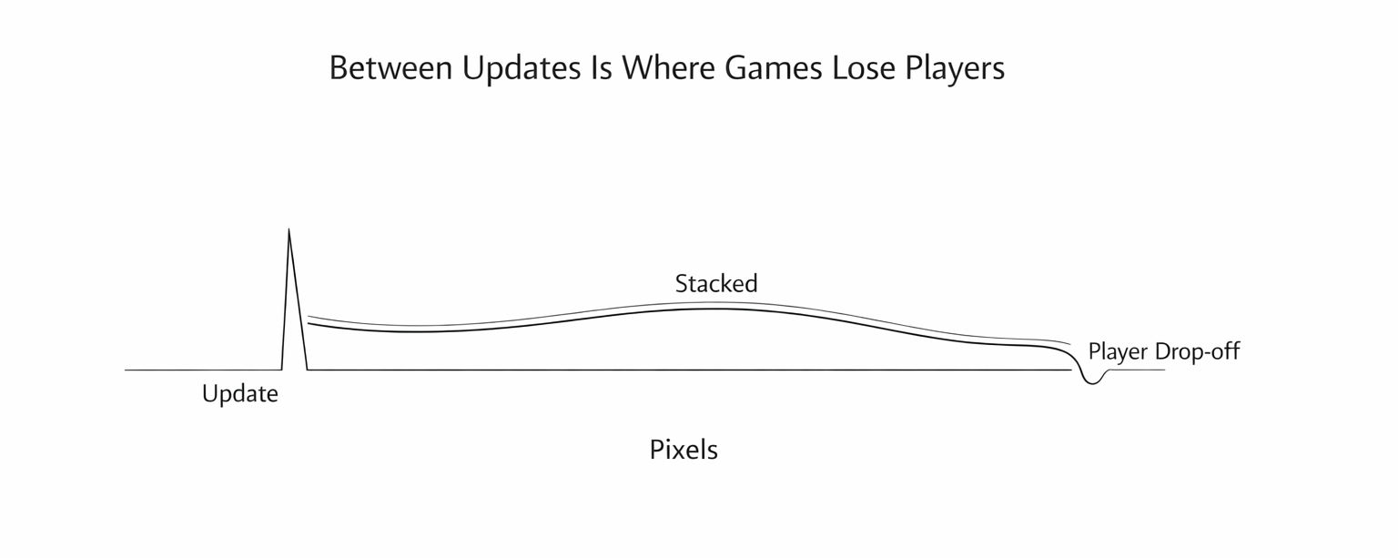 A new feature drops. Players flood back. Engagement spikes. The dashboard looks healthy. The team celebrates. And then the update cycle ends and the next one is six weeks away and nobody has a real answer for what keeps players inside the game during that silence.