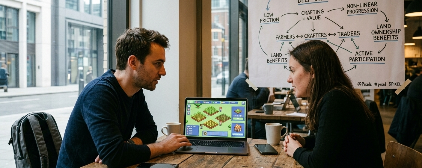 Pixels looks like a cozy farm sim, but it’s actually a lesson in economic tension. The "casual" layer keeps the friction low, but the "social" layer is what forces you to trade, optimize, and compete.