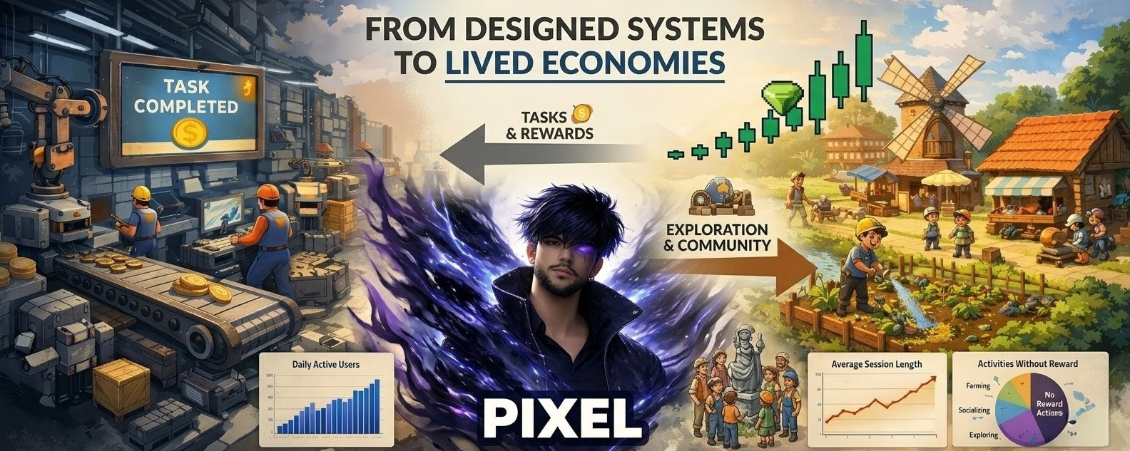Pixels is still. It does not fully solve every challenge it introduces. There are still questions about how its economy will grow how rewards will be balanced and how user behavior will change as the system gets bigger.. What it shows is important. It shows that digital environments do not have to be designed to get things done. They can also be spaces where behavior develops naturally and value forms over time.