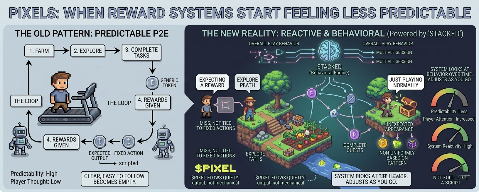 Stacked đóng một vai trò ở đây, ngay cả khi bạn không thấy nó trực tiếp. Nó nhìn vào hành vi theo thời gian, không chỉ là các hành động đơn lẻ. Điều đó thay đổi cách phần thưởng được đặt. Nó ít liên quan đến những gì bạn đã làm một lần, mà nhiều hơn về cách bạn đã chơi tổng thể.