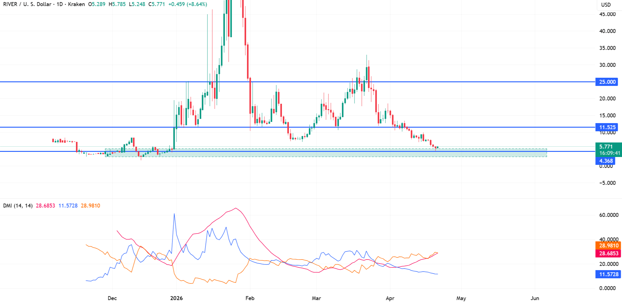 🔹 $RIVER đã ổn định trong một vùng tích lũy quan trọng, thiết lập một nền tảng nhu cầu vững chắc. Bất chấp sự phục hồi, các mức kháng cự tại 11,52 USD và 25 USD vẫn là những rào cản lớn. Hơn nữa, Chỉ số Hướng đi (DMI) cho thấy -DI cao hơn đáng kể so với +DI và ADX ở mức cao xác nhận rằng xu hướng giảm giá hiện tại vẫn giữ được sức mạnh tiềm ẩn.