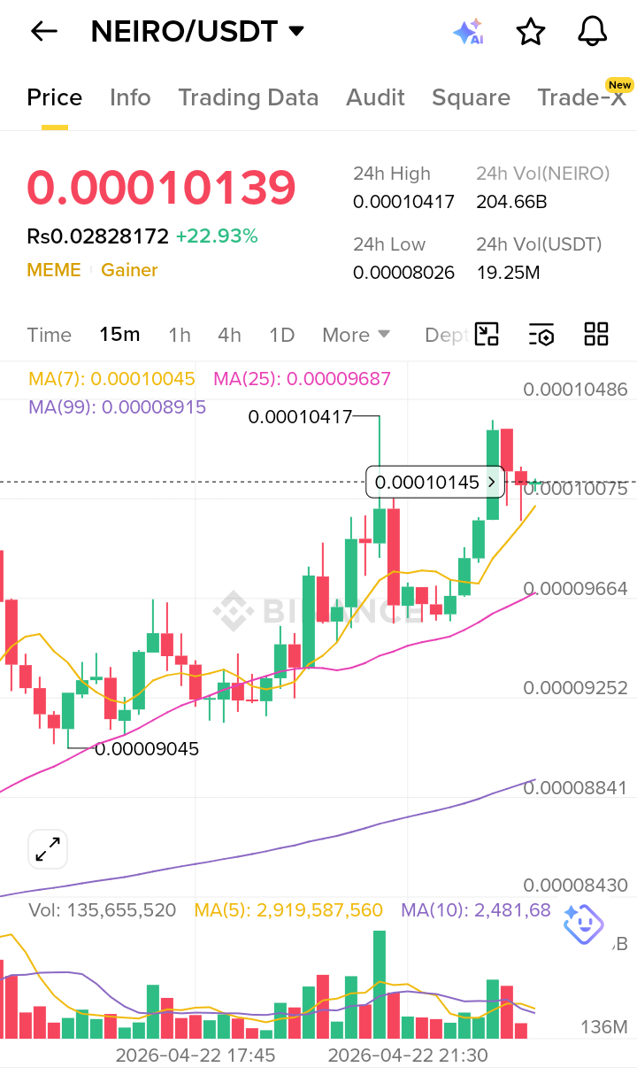 Liquidity Depth: With a 24h volume of $19.25M USDT on this pair alone, NEIRO offers enough depth for mid-sized institutional positions without catastrophic slippage.