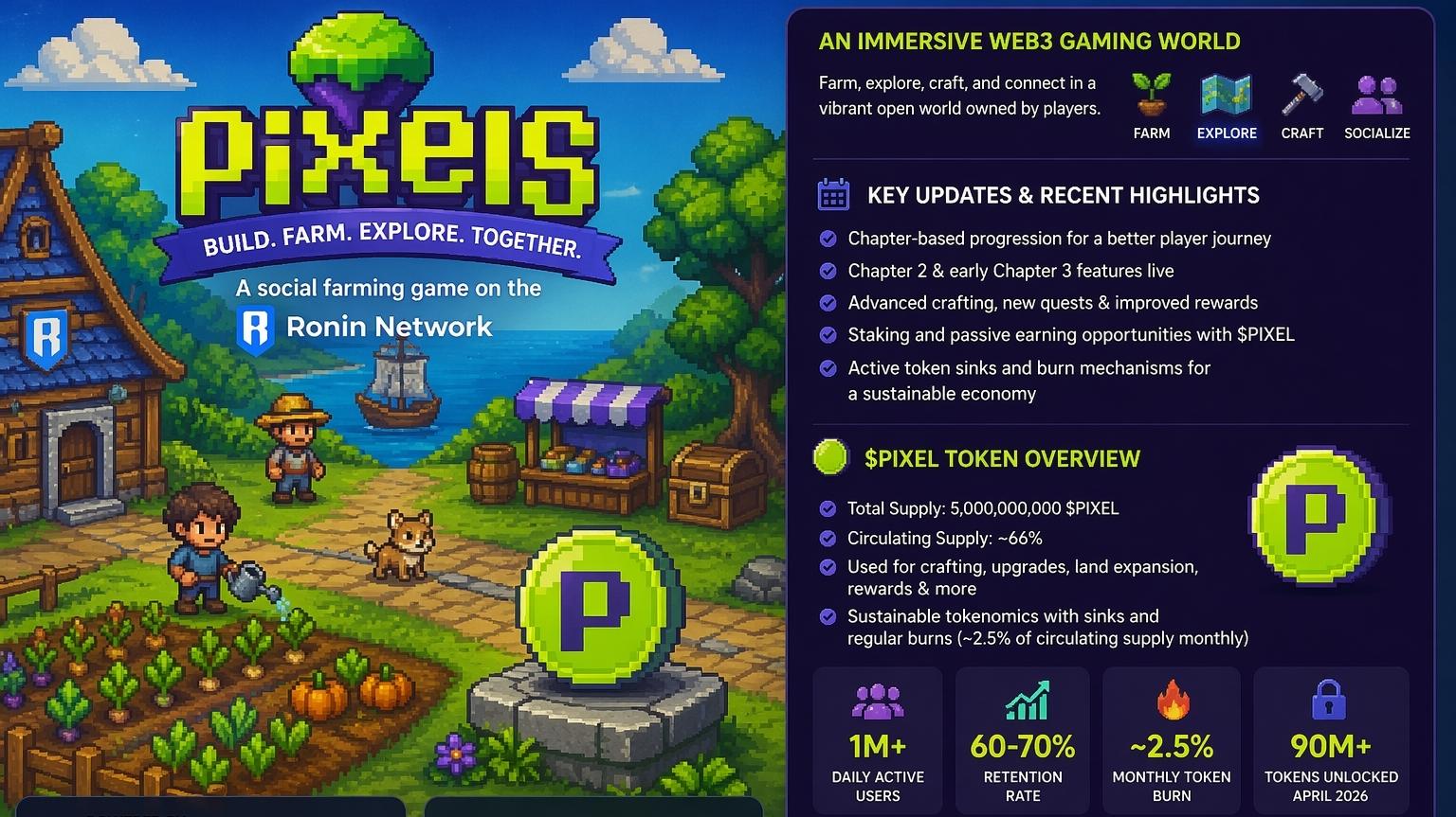 people keep coming back to. At first glance, it’s a simple farming and exploration game built on the Ronin Network. You plant crops, gather resources, craft items, and interact with other players. But once you spend some time in it, you start to realize there’s something deeper going on especially when you look at how fast the game is evolving and how tightly everything is connected to the $PIXEL token.