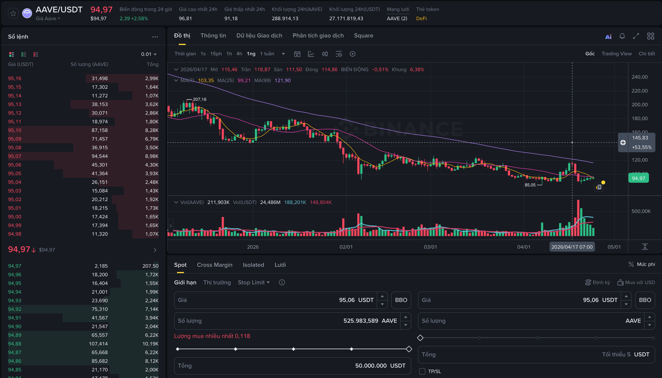 StaniKulechov– nhà sáng lập Aave – недавно chia sẻ một sự cố đáng chú ý trong DeFi. Một người dùng đã cố gắng mua token AAVE bằng 50 triệu $USDT thông qua giao diện swap của Aave. Tuy nhiên, do kích thước lệnh quá lớn so với thanh khoản của pool, giao dịch đã gây price impact gần 99%.